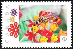 Wasp and bee on flower 2019